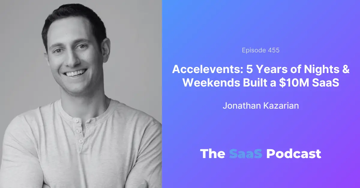 Jonathan Kazarian bootstrapped Accelevents for 5 years part-time, hit $1M ARR, then pivoted to 10X revenue after COVID wiped out his business.